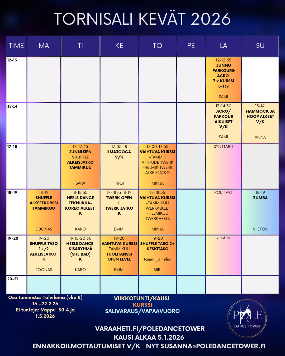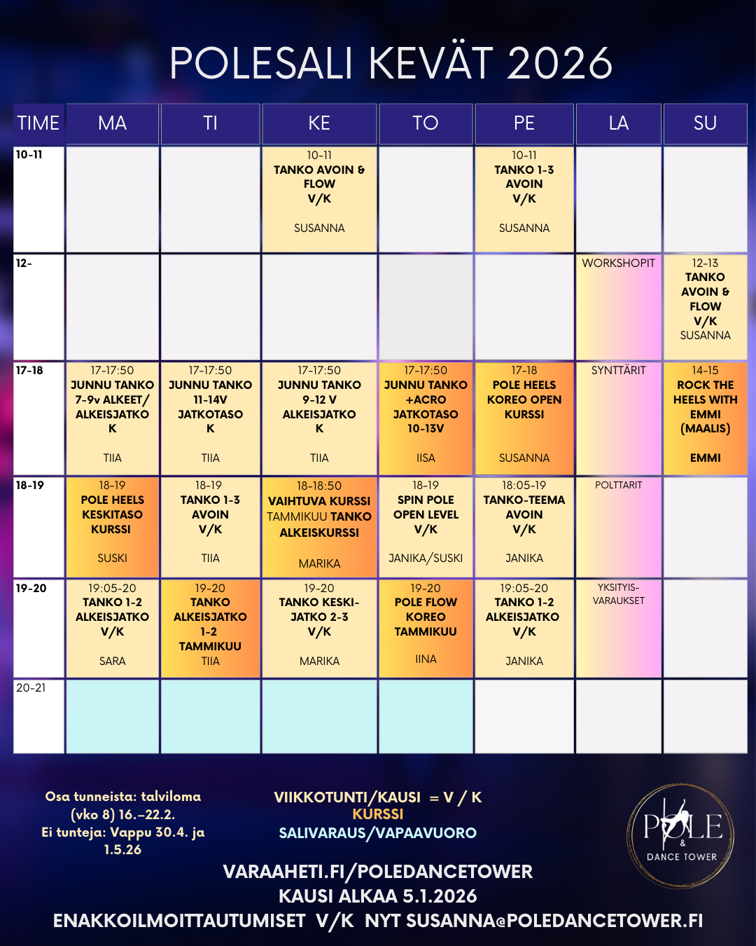 Varaukset: susanna@poledancetower.fi