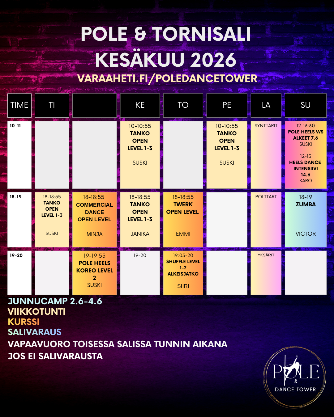 ➡️ Varaa kausipaikat ennakkoon verkkokaupasta tai susanna@poledancetower.fi